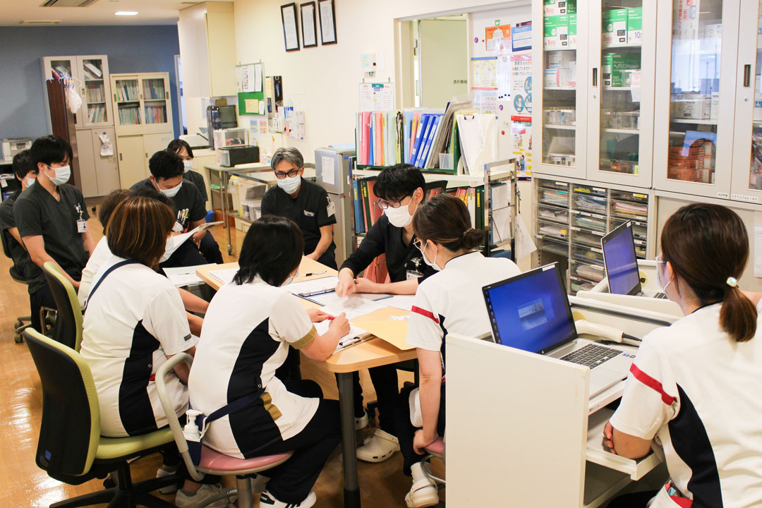 また、担当医師・麻酔科医師・看護師以外にも、臨床工学技士・薬剤師・レントゲン技師・検査技師とも協力して「ワンチーム」で患者さんに関わっています。