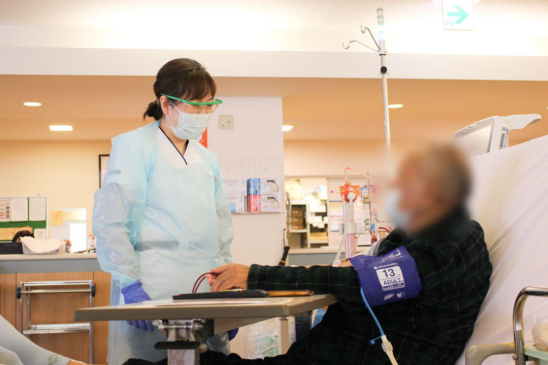 一人ひとりの患者さんに受け持ち看護師が担当し、疑問や自己管理について相談しやすい体制を整えています。患者さんに寄り添い、安心して安全にそして苦痛なく透析を受けていただけるよう心がけています。