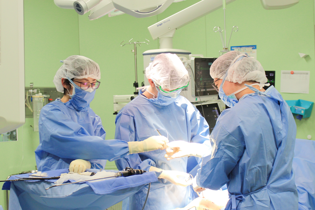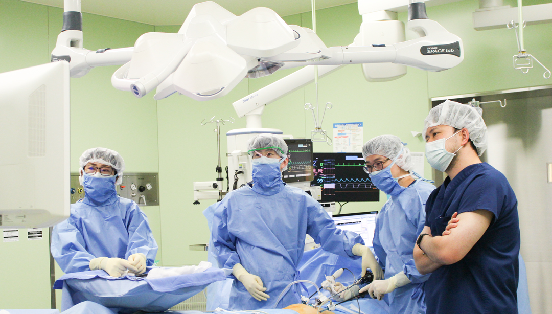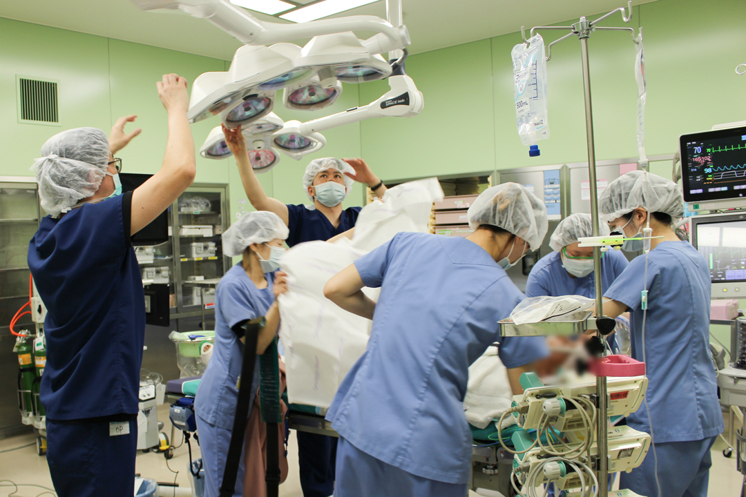 当院には6部屋の手術室があり、年間900件前後の手術をおこなっています。手術は局所麻酔、全身麻酔など麻酔方法も様々で、入院だけでなく外来手術もおこなっています。各科医師と看護師は9人で対応しています。
