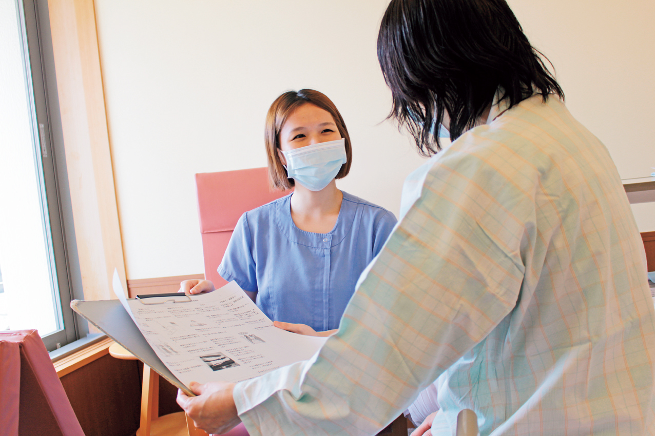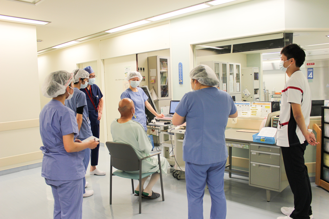 全身麻酔・腰椎麻酔で手術を受けられる患者さんには、前日もしくは当日に手術室看護師が病室を訪問して説明や顔合わせをおこない、手術を少しでも安心して受けていただけるように心がけています。