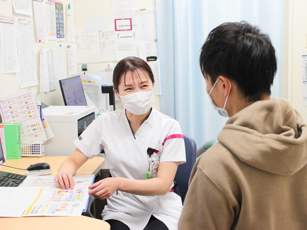 私たちは、患者さんの地域での暮らしを支えるために、他部門と協働しながらより良い外来看護の提供を目指し、「誠実さと温かい心で信頼される看護師」をモットーに日々頑張っています。